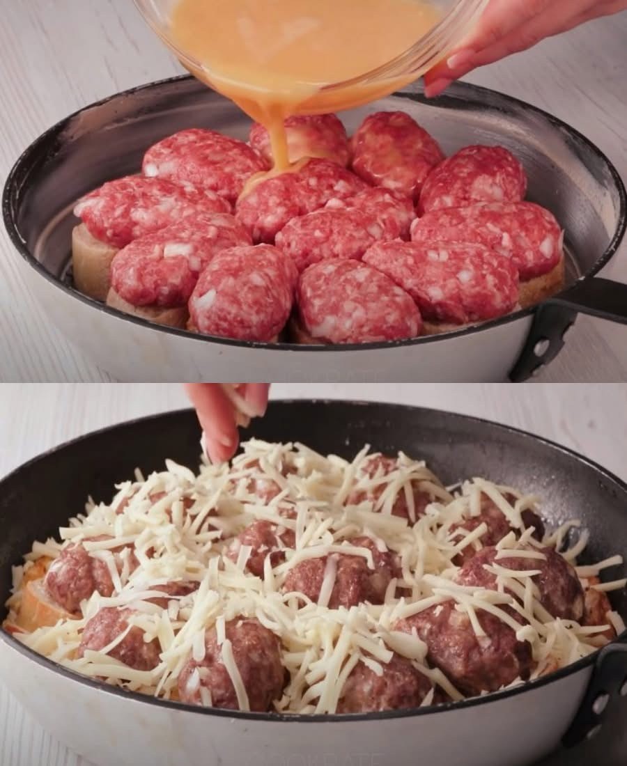 Сковороду добре змащуємо вершковим маслом та викладаємо в неї нарізаний багет.