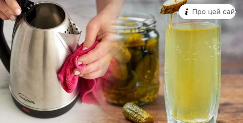 Розсіл з огірків містить кислоти, які ефективно розчиняють вапняні відкладення, не пошкоджуючи поверхню чайника.