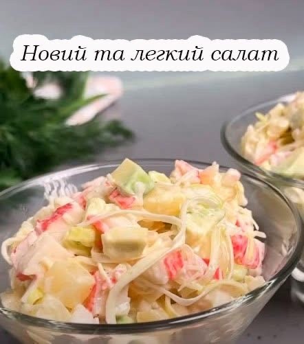Шукаєте легкий, смачний і оригінальний салат, який стане прикрасою святкового столу або чудовим доповненням до вечері? Салат “Новинка” з крабовими паличками, ананасами та авокадо — саме те, що вам потрібно! Це яскраве поєднання солодкого, солоного та ніжного смаку не залишить байдужим навіть найвибагливіших гурманів.