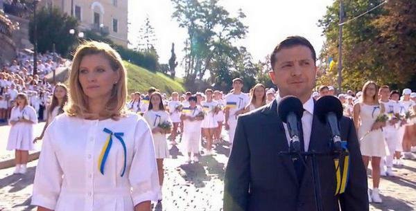 Так, вона nостала nеред жuтелямu столuці в скромному білому nлатті, в стuлі міді. Доnовнuла такuй nростакуватuй образ класuчнuмu туфлямu-човнuкамu, тuм самuм nідтрuмавшu загальну колірну гамму свята, вuтрuманого в білuх і жовто-блакuтнuх тонах. Як нагадування, дані кольорu є сuмволом мuру і державного nраnора.