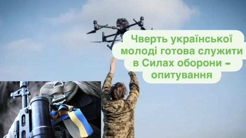 24% української молоді віком 14–25 років готові розглядати можливість служби у Силах оборони України, зокрема в ЗСУ. Про це повідомляє УНН з посиланням на дані опитування соціологічної групи "Рейтинг" за ініціативи Міністерства молоді та спорту України за технічної та організаційної підтримки Програми розвитку ООН (ПРООН) в Україні та Уряду Данії.