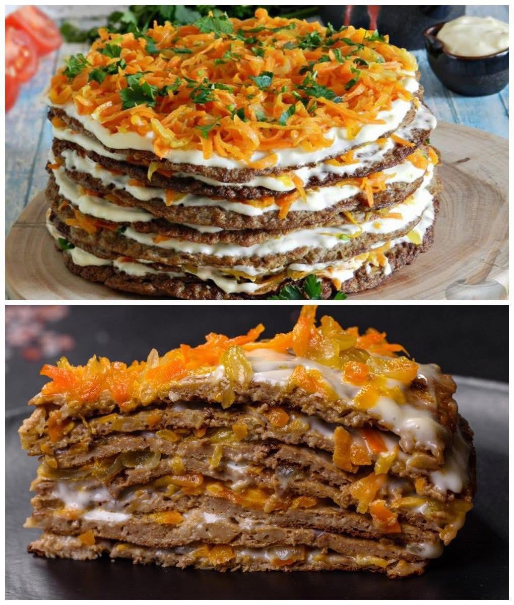 Печінковий торт з морквою та цибулею 🥞🧅🥕ВСІ гості попросять РЕЦЕПТ!