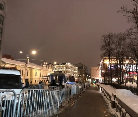 Крім того, в Мережі з'являються фото, зроблені в російських містах на вулицях і на площах, де повинні проводитися мітинги. Ці вулиці і площі вже зараз перекриті турнікетами, там чергують сотні поліцейських.