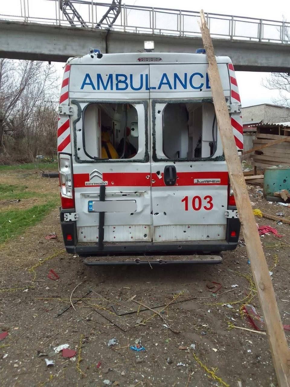 59-річний чоловік дістав вибухову травму, контузію та поранення живота, його намагалися доставити в лікарню, але в цей момент окупанти відкрили прицільний вогонь. 33-річний фельдшер та 63-річний водій дістали вибухові травми і контузії.