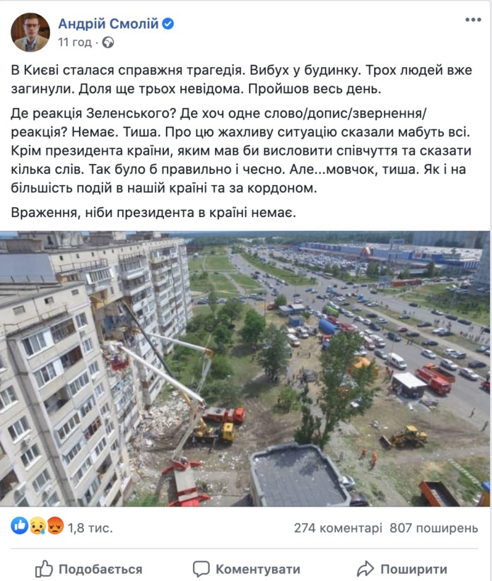 Політолог: “Враження, ніби президента в країні немає. В Києві сталася справжня трагедія. Вибух у будинку…