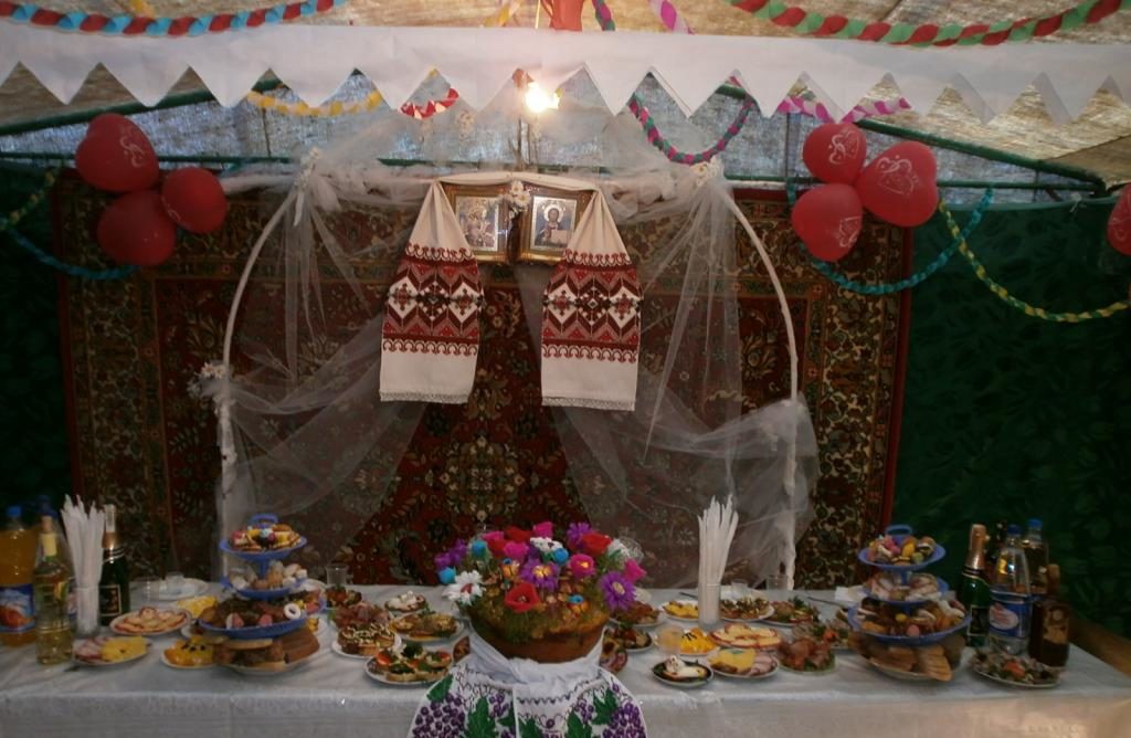 За два тижня до знаменної події до хати, де має бути весілля з усіх куточків села стікаються люди з даниною – курка, яйця, сметана. В посадці же намічена сосна, з гілок якої буде зроблено весільну браму за чітко обговорену наперед таксу – три літри caмогону. Свиня і кнур вже доживають останніх днів. З трьох вулиць зносяться кльоші з обмотаними кольоровими нитками ніжками, бо кожна господиня має свою мітку, тарілки і келішки. На палатку в усіх сусідів забрано капи і церати, звозяться столи і лавки.