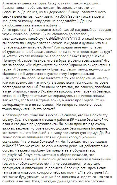Шановний Володимире Олександровичу. Половину свого кар’єрного успіху Ви побудували на тому, що висміювали і критикували абсолютно всіх президентів України. Упевнений, що Ви також з гумором поставитеся до мого скромного листа.