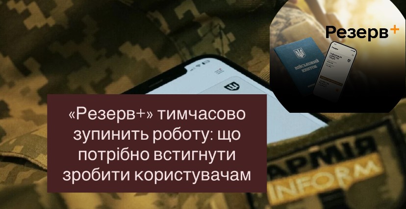 У застосунку для військовозобов’язаних та резервістів «Резерв+» будуть тимчасово недоступні всі послуги та функція оновлення військово-облікового документа.