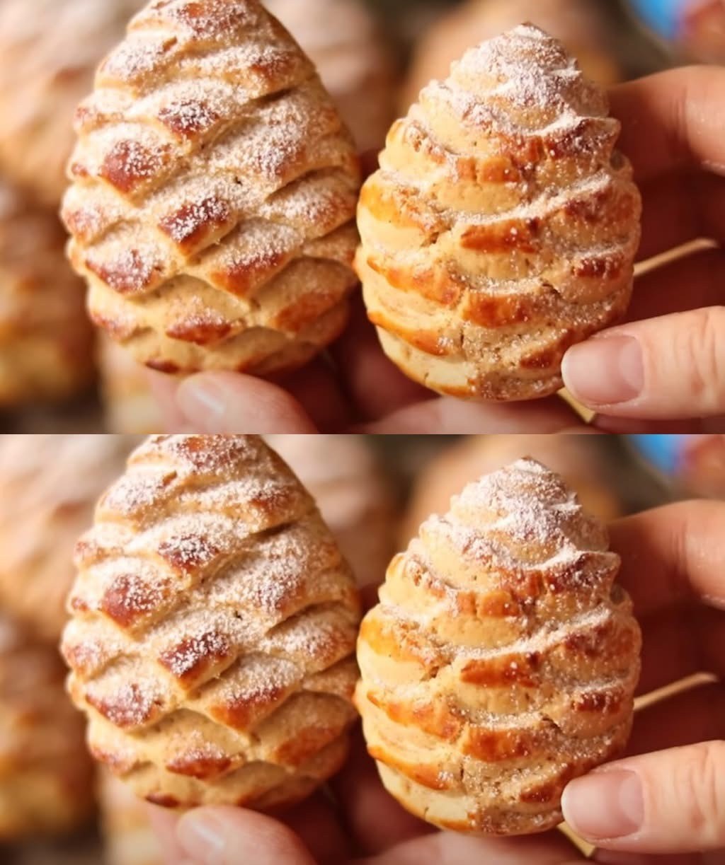 Яйця збити з цукром, сіллю і медом. Після з’єднання інгредієнтів додаємо розм’якшене вершкове масло і приправляємо сушеною апельсиновою цедрою і ванільним цукромВсе перемішати, додати борошно з розпушувачем і замісити тісто.Порада: щоб вийшло однорідне тісто без грудочок, заздалегідь просійте борошно і двічі додайте його до суміші.Від тіста відривайте невеликі шматочки і формуйте з них кульки діаметром 3 см. Сформуйте з них печиво, що нагадує форму конусів.За допомогою ложки зробіть кілька борозенок, що нагадують лусочки соснової шишки. Повторіть так з усім печивом.Викладіть шишки на деко, застелене папером для випікання, змастіть збитим жовтком і випікайте в розігрітій до 180°C духовці 15 хвилинЗалиште різдвяні медові шишки охолонути та зберігайте в герметичній ємності в темному прохолодному місці. Подавайте, посипавши цукровою пудрою.