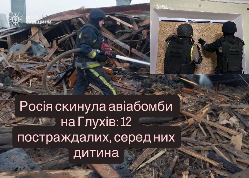 У Глухівський громаді, що на Сумщині, кількість постраждалих у результаті ворожої атаки авіабомбами зросла до 12, передає УННіз посиланням на ДСНС.