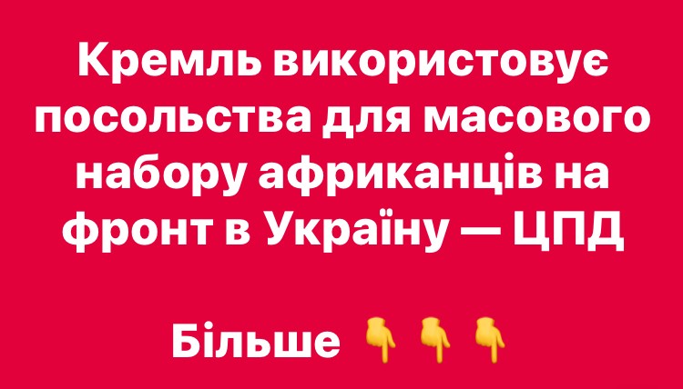 "Попри риторику про "дружбу з Африкою" і боротьбу з колоніалізмом, кремль фактично експлуатує вразливу молодь континенту як ресурс для своєї війни", - резюмують у ЦПД.