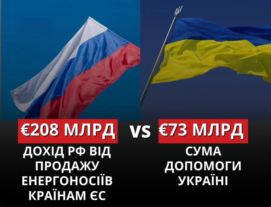 Росія заробила майже втричі більше від продажу енергоносіїв європейським країнам, ніж розмір допомоги, наданий ними Україні: