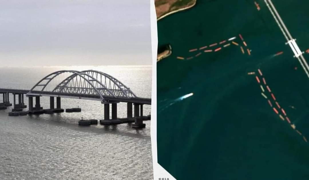 РОСІЯНИ СТЯГНУЛИ ПІД КРИМСЬКИЙ МІСТ ВЖЕ 30 БАРЖ: БОЯТЬСЯ УКРАЇНСЬКИХ ДРОНІВ