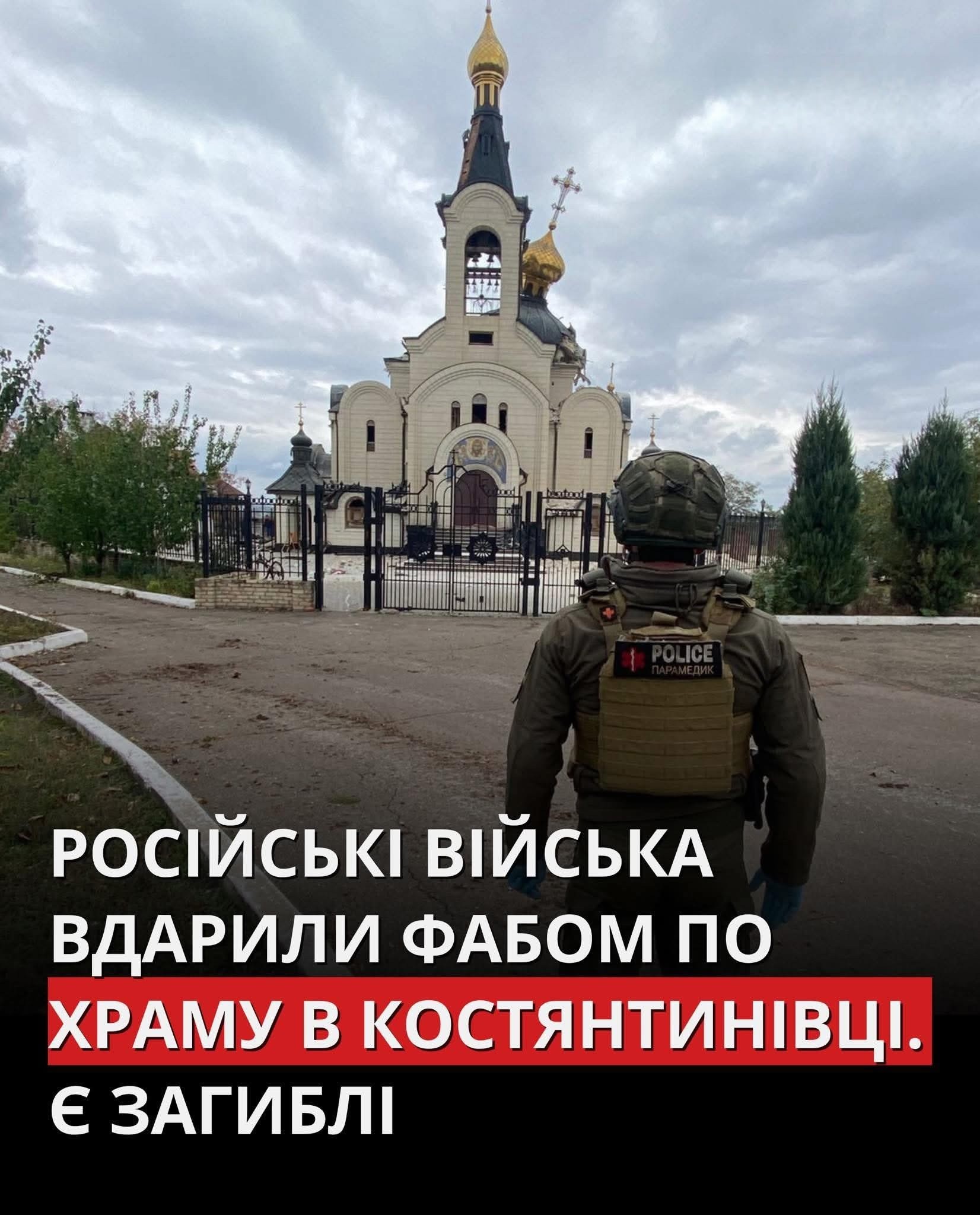 🕯️ Росіяни вдарили ФАБом по храму в Костянтинівці