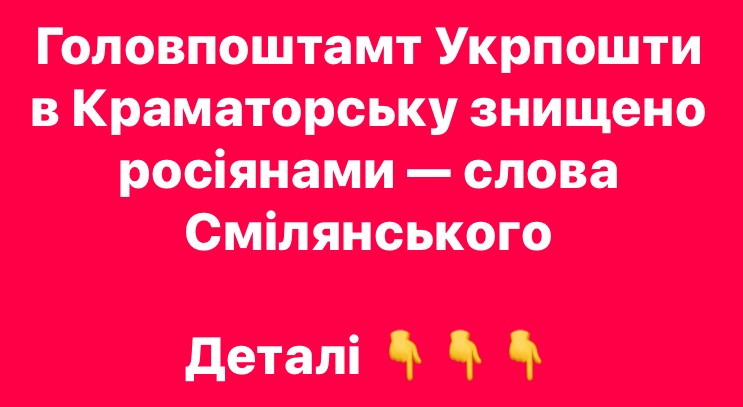 Сьогодні ворог знищив будівлю нашого Краматорського Головпоштамту. Як до цього знищив Маріупольський Головпоштамт та інші