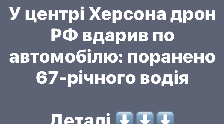 Російський дрон атакував авто в центрі Херсона: 67-річного водія тяжко поранено