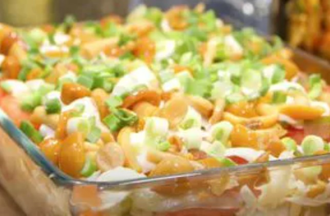 Цікаве поєднання продуктів, дозволяє надати цікавий смак цьому салату. Обов'язково приготуйте на найближче свято! Смачно, ситно і просто!