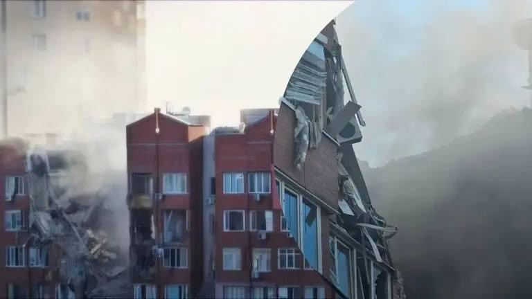 У багатоповерхівці понівечені чотири поверхи. Там у квартирах ймовірно заблоковані люди. Як і в автівках навколо місця ракетної атаки,