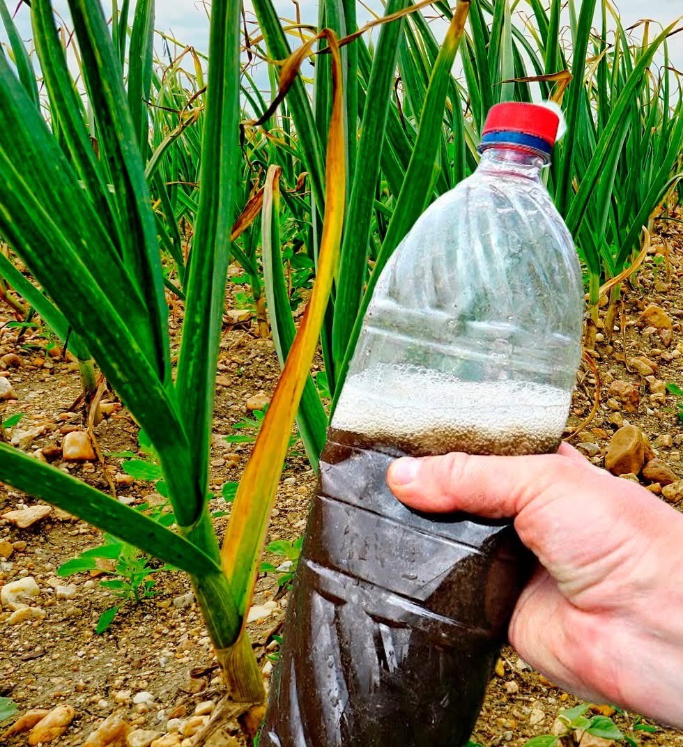 - Добре себе зарекомендував й нашатирний спирт, який можете придбати в аптеці. Візьміть його 2 ст. л. та розчиніть у 8-10 літрах простої води. Такий розчин має добре вплинути на процес фотосинтезу у листах часнику. Паралельно відгонить цибулеву муху та захистить рослини від грибкового зараження. Підживлюйте у похмуру погоду, щоб не обпекти листя.