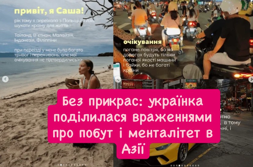 Українська блогерка Саша, яка після року життя в Польщі переїхала до Азії, розповіла про власний досвід проживання у країнах регіону та спростувала поширені уявлення про побут, медицину й безпеку. За її словами, реальність виявилася значно кращою, ніж очікування.