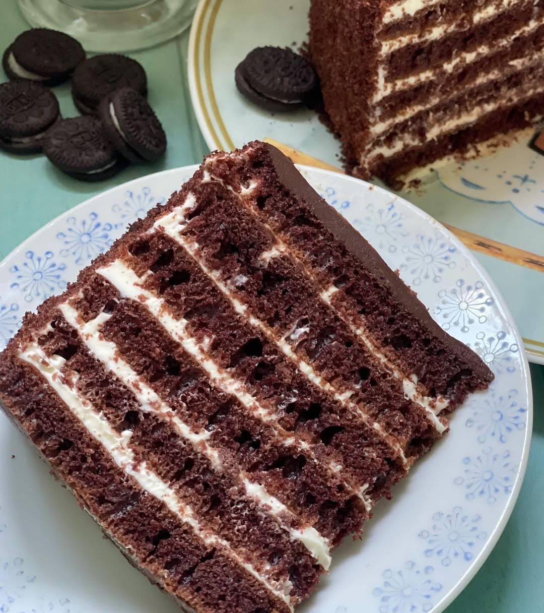 Справжня знахідка, коли зайвий раз не хочеться вмикати духовку. Коржі м‘які, пухкі, смакують як бісквіт на окропі, спечений в духовці. Сам тортик в міру солодкий, соковитий, просочений; іменинник зацінив!.