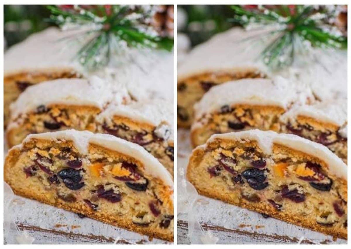 5. Глазур: Змішайте цукрову пудру з лимонним соком, щоб отримати однорідну глазур. Охолоджений штолен змастіть цією глазур'ю.