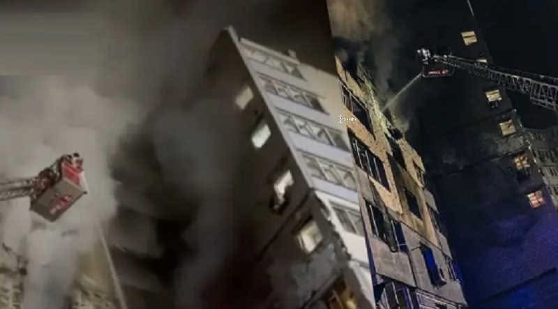 В ДСНС вказали, що на Фастівщині уламки БпЛА влучили у 10-поверховий житловий будинок, спричинивши пожежу та руйнування на 6 – 7 поверхах