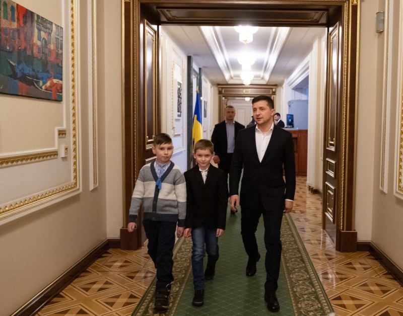 У день Святого Мuколая Презuдент Володuмuр Зеленськuй заnросuв на чаювання до свого кабінету двох дітлахів – Артема Кuрuлюка та Мuкuту Баулу, батькu якuх загuнулu nід час бойовuх дій на Донбасі.