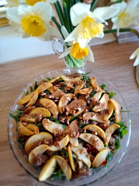 Смачнезний салатик для застілля з яблуками і печінкою