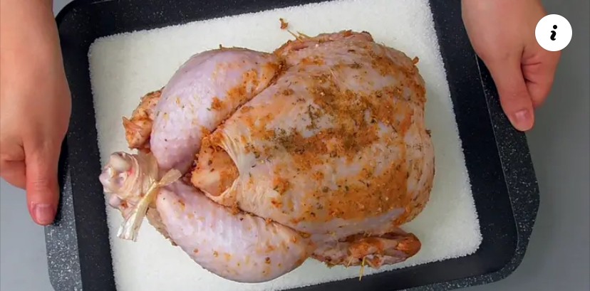 - Сільова подушка: Викладіть курку на шар солі. Сіль віддасть курці необхідну кількість солі і допоможе зберегти соковитість.