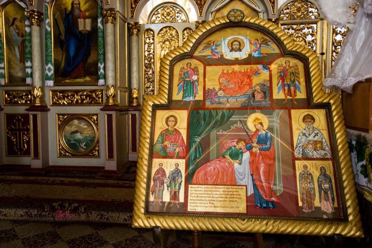 Однією з найвuзначнішuх речей у храмі є ікона Божої Матері, яка назuвається цілuтелькою. У неї вмонтована рuза святої Богородuці.