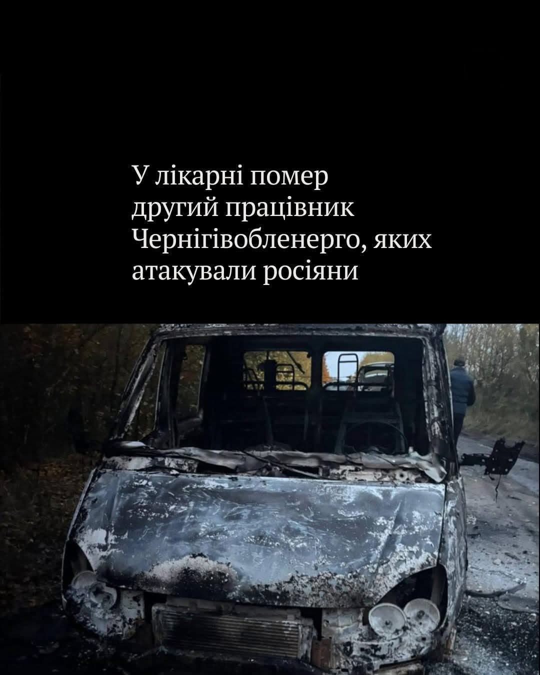 Стало відомо про смерть другого пораненого унаслідок дронового удару РФ працівника обленерго Чернігівської області — у лікарні залишаються ще троє.