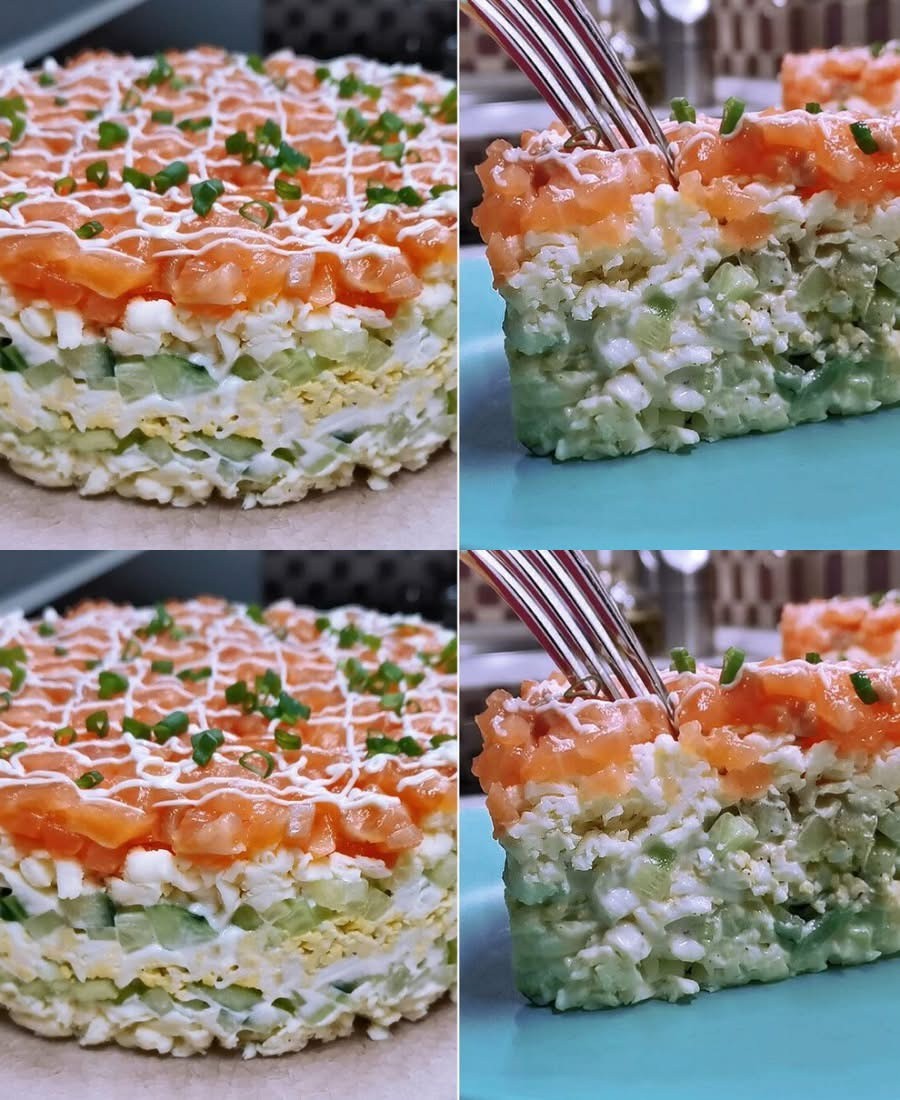 Святковий салат з червоною рибою: ніжне поєднання сьомги з плавленим сиром