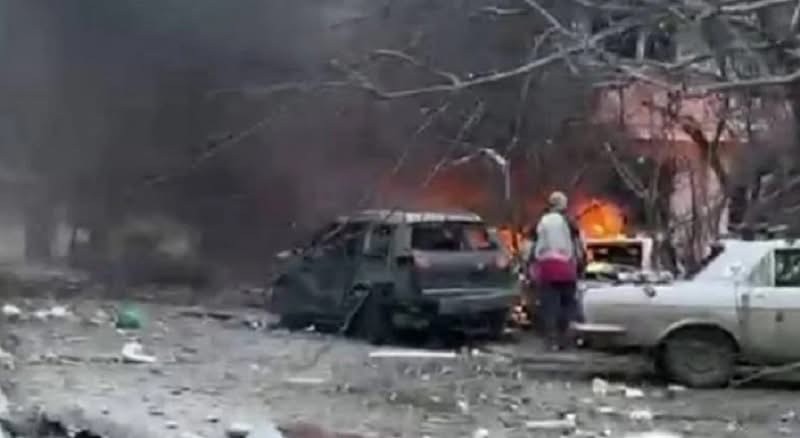 Під завалами можуть перебувати люди.Також спалахнув автомобіль, а ще пʼять авто — пошкоджені