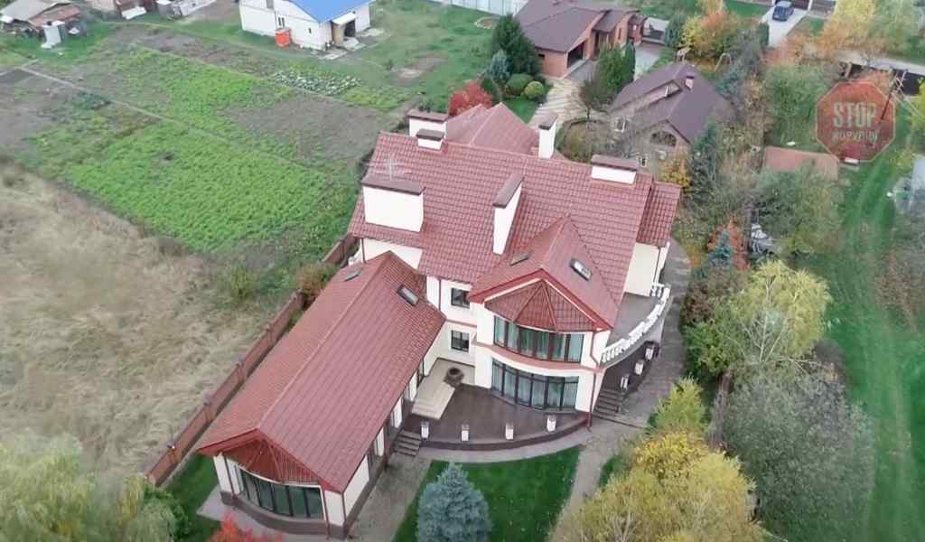 На території – будинок на понад 500 квадратів, впритул до нього – спортзала з критим басейном. А на подвір’ї – господарчі споруди, гараж та будиночок для гостей. Також тут є дитячий майданчик, альтанка й фонтан.