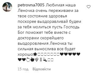 “Любимо дуже, молимося, Все Буде Добре”, “Якнайшвидшого і легкого одужання!!!”, “Вірю, світи”, “Олена Одужуйте швидше”, “Оленка, якнайшвидшого вам одужання”, “улюблена наша Оленка, дуже переживаємо за твій стан здоров’я скоріше одужуй, будемо за Тебе молитися нехай Господь Бог допоможе тобі разом з докторами якнайшвидшого одужання. Оленко, ти сильна витривала все Буде Добре”, “бажаю якнайшвидшого одужання! Без вас Квартал Не Квартал!”, “Тримайся, дорога!”,- пишуть в мережі.