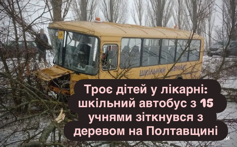 Троє дітей у лікарні: шкільний автобус з 15 учнями зіткнувся з деревом на Полтавщині