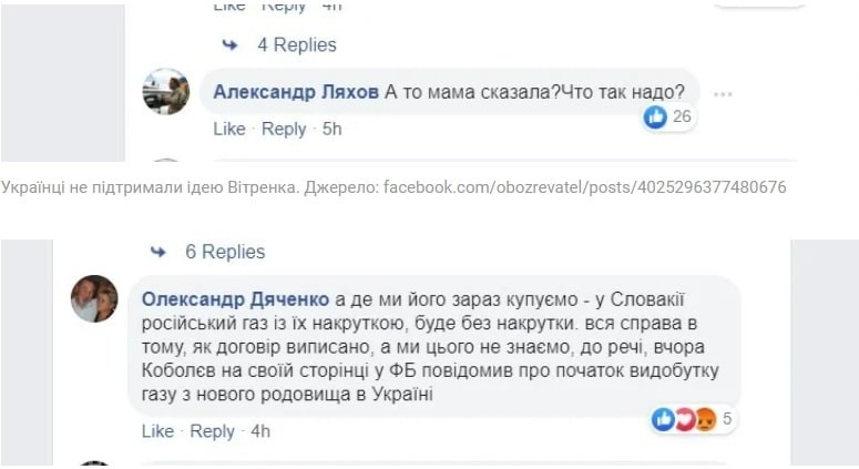 "Ніщо не обходиться Україні так дорого, як дешевий російський газ", – прокоментував пропозицію політика користувач на сторінці OBOZREVATEL в Facebook. Крім того, українці також сумніваються, що в Росії є "незалежні" компанії: "незалежні компанії в Росії? Що цей хлопець кyрив?".