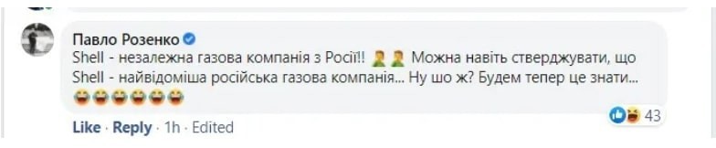 Юрій Вітренко вже встиг відповісти на критику на своїй сторінці в соцмережі. Він написав, що не пропонував купувати газ у "Газпрому", а мав на увазі тільки незалежні компанії з Росії, такі як Shell. Насправді компанія є англо-голландською.