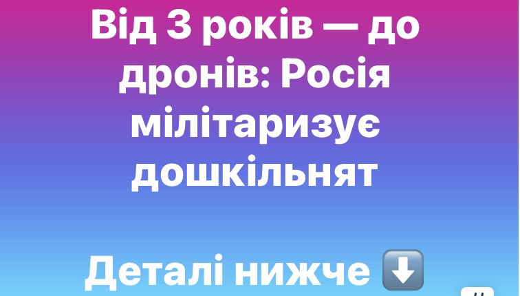 Формально це подають як "пізнавальні зустрічі". Насправді йдеться про цілеспрямовану мілітаризацію з наймолодшого віку. Дітям нав’язують уявлення про війну як про норму, а військову службу - як природний і бажаний шлях. росія системно мілітаризує дітей з дошкільного віку, готуючи їх до війни й культу армії. Зустрічі з військовими в дитсадках - це не патріотичне виховання, а промивання мізків, яке нормалізує насильство та прищеплює дітям ідею, що війна - це норма життя