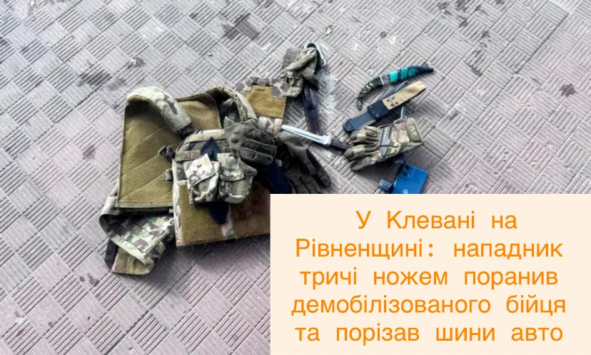 У Клевані на Рівненщині: нападник тричі ножем поранив демобілізованого бійця та порізав шини авто