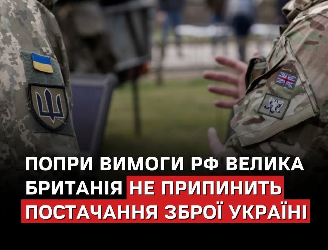 У Лондоні підкреслили, що її позиція не змінилася, і потік військової допомоги вартістю 4,5 млрд фунтів цього року не припиниться лише тому, що цього вимагає Кремль.