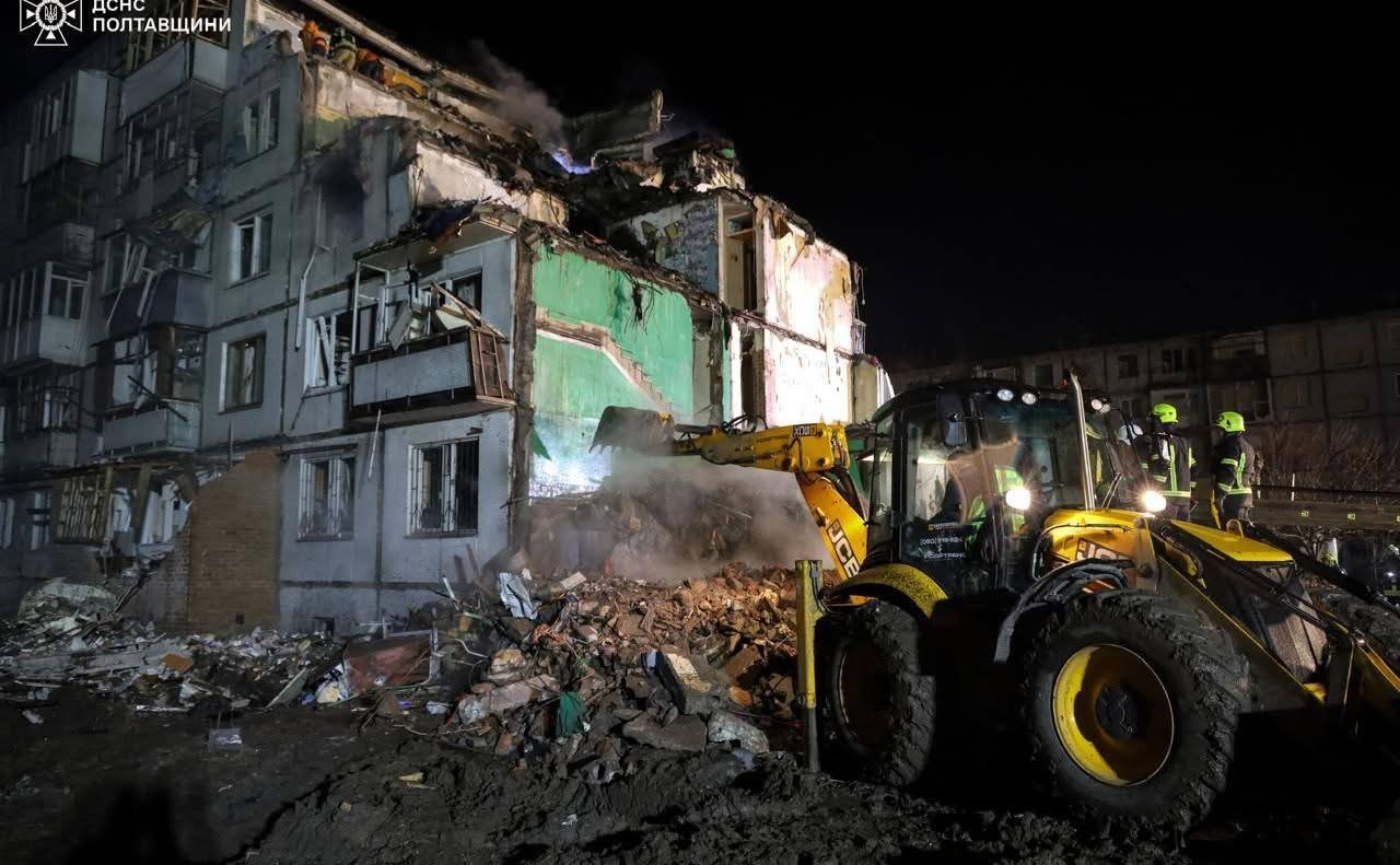 За даними місцевої влади, російські війська 1 лютого завдали ракетного удару по Полтаві, поціливши по багатоповерхівці — зруйнований під’їзд із 1 по 5 поверх, виникла пожежа. Також пошкоджені 18 багатоквартирних будинків та дитсадок, які розташовані поруч.