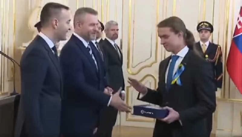 Коли міністр запропонував Оманіку потиснути руку словацькому президенту Петеру Пеллегріні, школяр відмовився, хоча президент вже простягнув долоню.