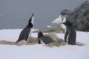 Фахівці стверджують, що зазвичай в Антарктиці пінгвіни мирно співіснують, бо мають різний спосіб життя і стратегії полювання, однак і сварки між видами теж трапляються.