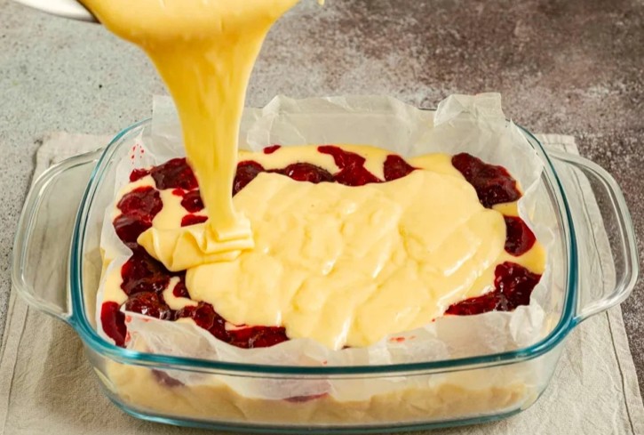 У 2 прийоми введіть у тісто суміш сухих інгредієнтів, щоразу перемішуючи масу до однорідності. У результаті у вас має вийти однорідне тісто густе, яке стікає з лопатки широкою стрічкоюЖаростійку форму для випікання застеліть пергаментним папером. Поступово розподіліть на дно форми половину готового тіста. Зверху викладіть варення або джем.Поверх варення рівномірно розподіліть тісто, що залишилосяДля приготування штрейзельної крихти змішайте холодне вершкове масло, цукор і борошно пшеничне. Розітріть інгредієнти в дрібну крихтуПосипте верх пирога готовою штрейзельною крихтою Відправте пиріг у розігріту до 180 градусів духовку на 40-45 хвилин. Готовність випічки перевірте дерев’яною шпажкою. Якщо вона виходить із пирога сухою, випічка готоваГотовий пиріг з варенням розріжте на порційні шматочки і подавайте до чаю або кави. Смачного