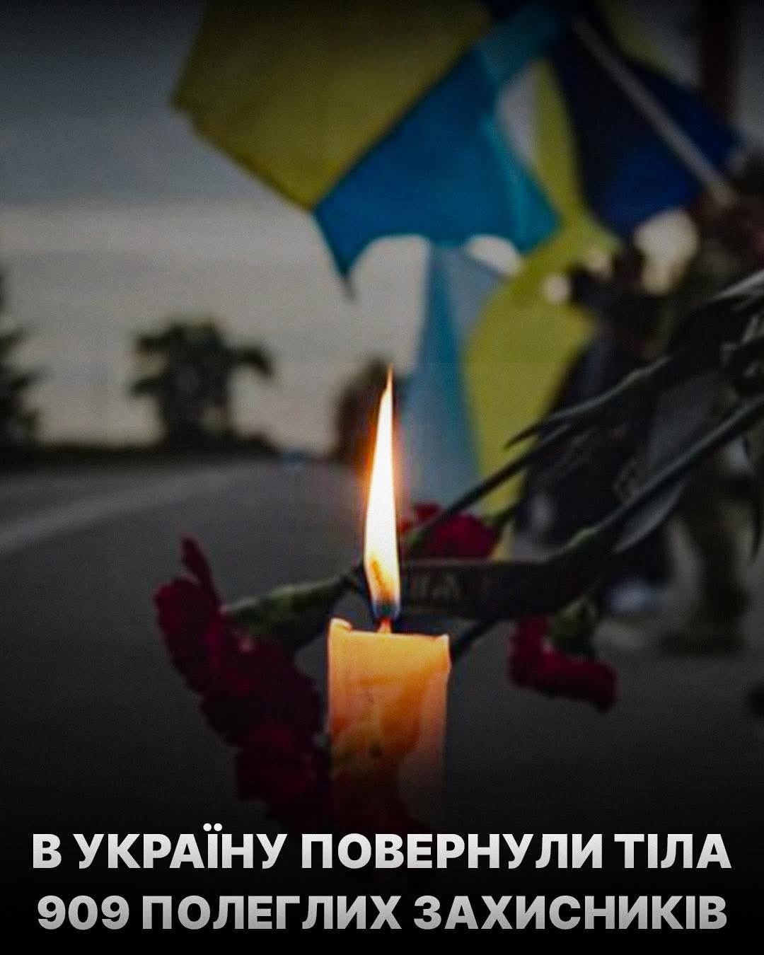 В Україну повернули ще 909 тіл загиблих захисників — це вже 77-й репатріаційний захід від початку повномасштабної війни.
