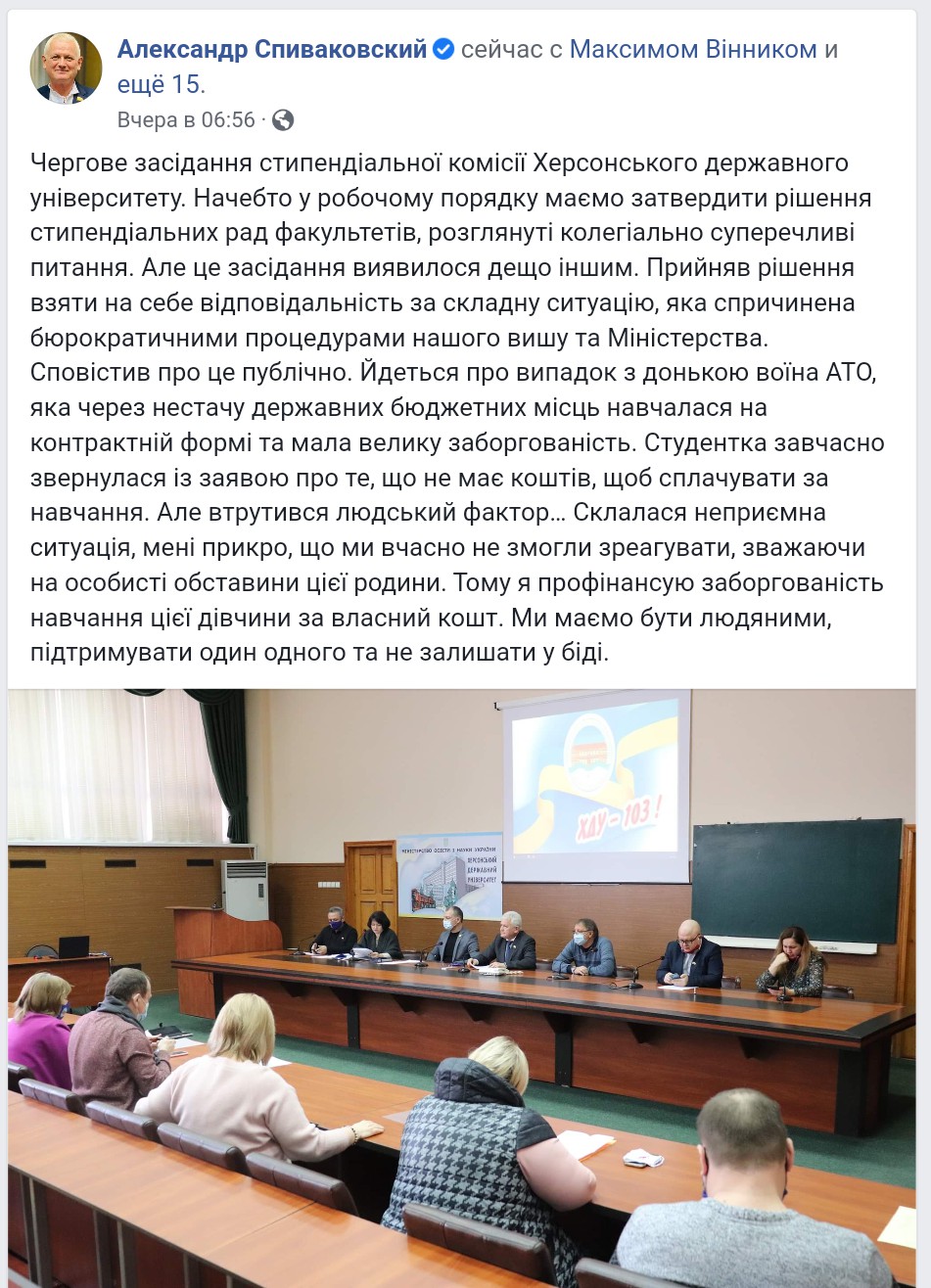 Вчинок ректора Херсонського університету щодо студентки-дочки бійця АТО, який заслуговує величезної поваги.