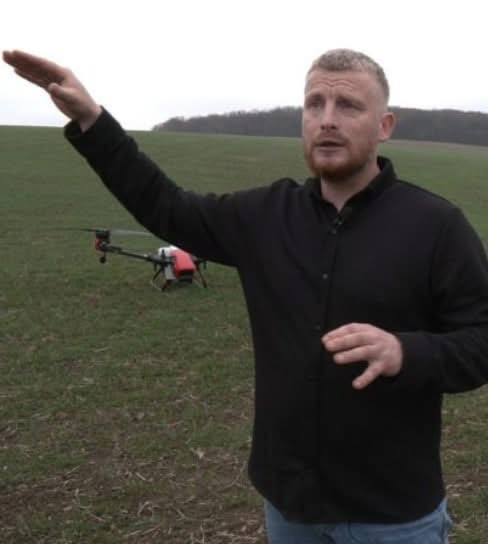Андрій створив власну справу з агродронами. Каже, що починав із маленького експерименту: купив дрон, розібрав, зібрав знову, навчився керувати і лише тоді наважився на перші польові випробування. Тепер його техніка обробляє великі площі — соняшник, кукурудзу, ріпак. Там, де важка техніка не проходить, дрони летять легко й точно. Це робота без поспіху, але з користю — для фермерів, для землі, для регіону.