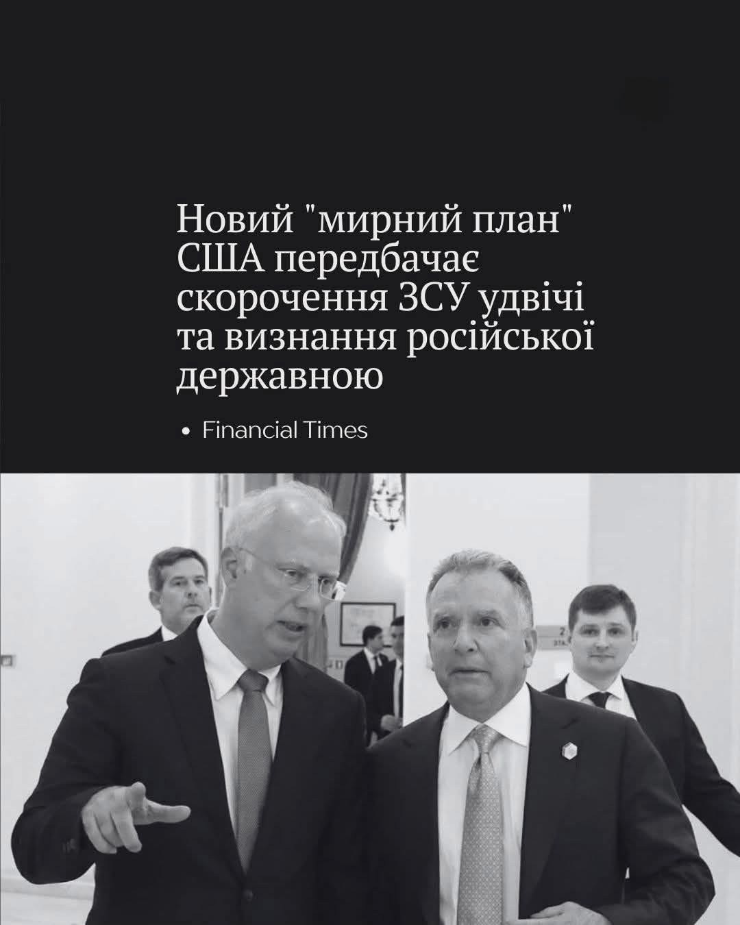 ❗Видання Financial Times оприлюднило нові подробиці так званого "мирного плану", який розробили у Маямі представники РФ та США — стверджується, що план вже було передано українській стороні, і та його